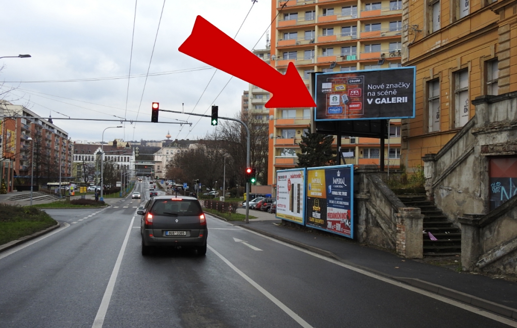 Billboard v samém centru Teplic je umístěn na křižovatce ul. Alejní a výjezdu z Náměstí Svobody. Viditelnost z hlavní tranzitní komunikace umístěné na okraji centra Teplic.