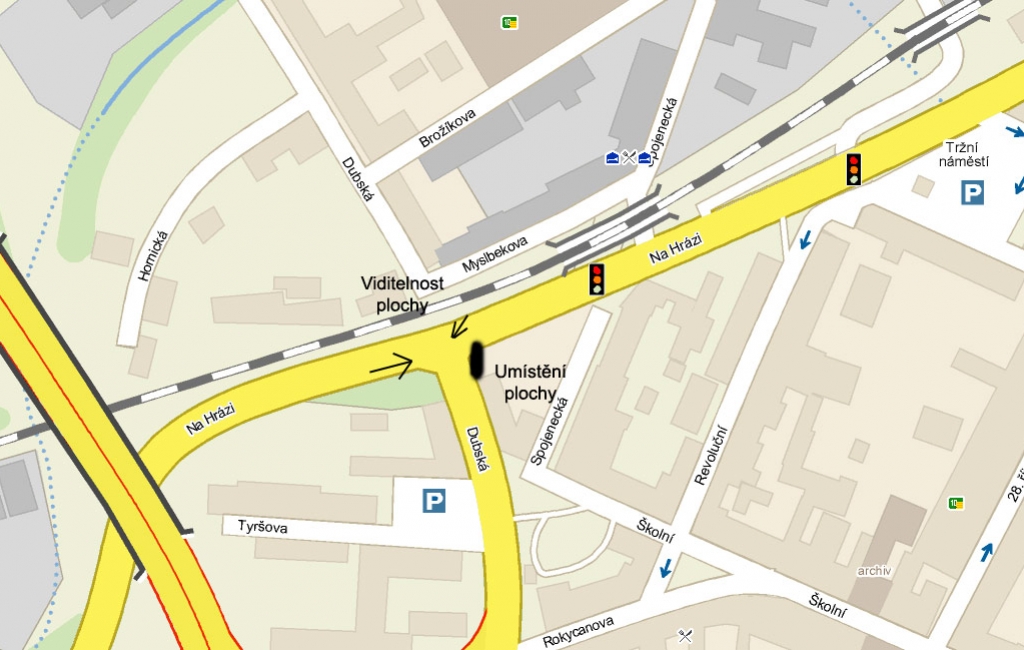 EuroBillboard k pronájmu na rušné křižovatce v centru Teplic. Vhodný jako navigační plocha k Olympii z německého směru - 1. křižovatka za sjezdem ze silnice číslo 8.