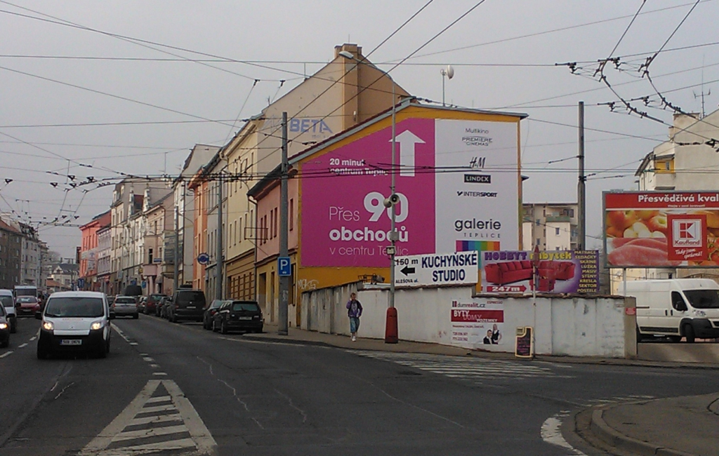 Plocha vhodná pro plachtu, směr z centra na Teplice