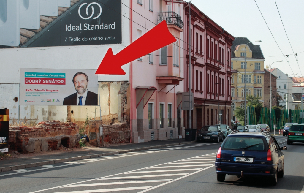 Euroboard, dobře viditelný z frekventované dopravní komunikace, cca 50 m od Hlavního nádraží Teplice v Čechách.