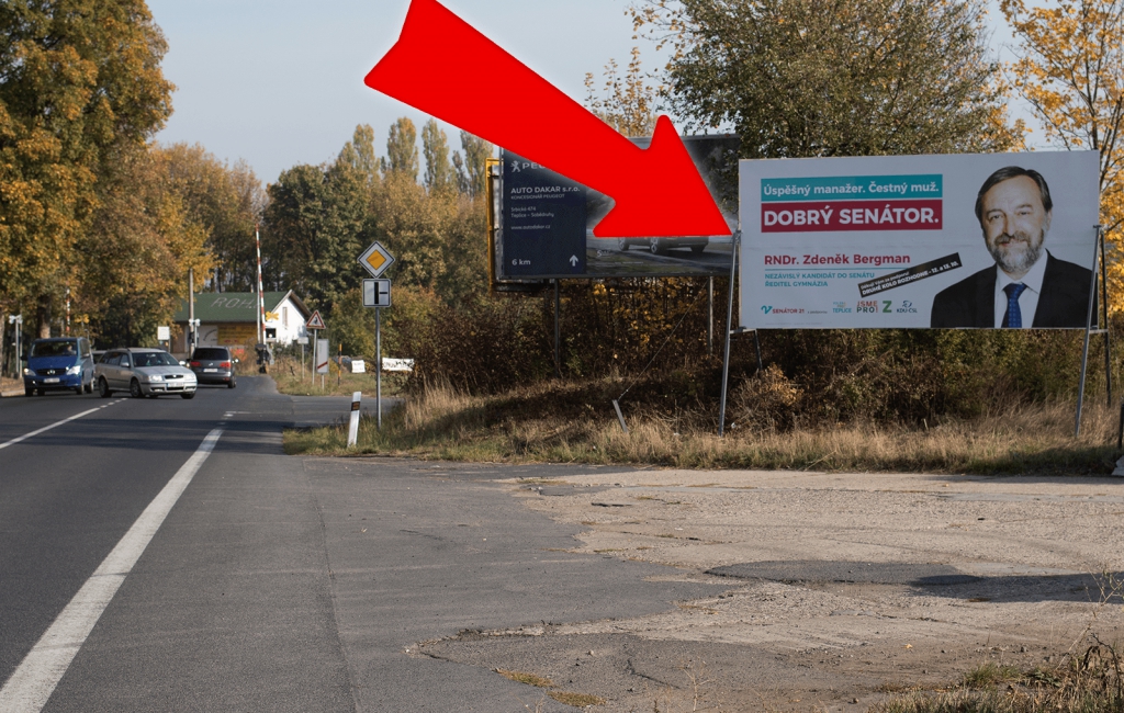 Euro billboard na kraji Teplic na příjezdové komunikaci 254 směr od Duchcova, kolmý na směr jízdy, vpravo